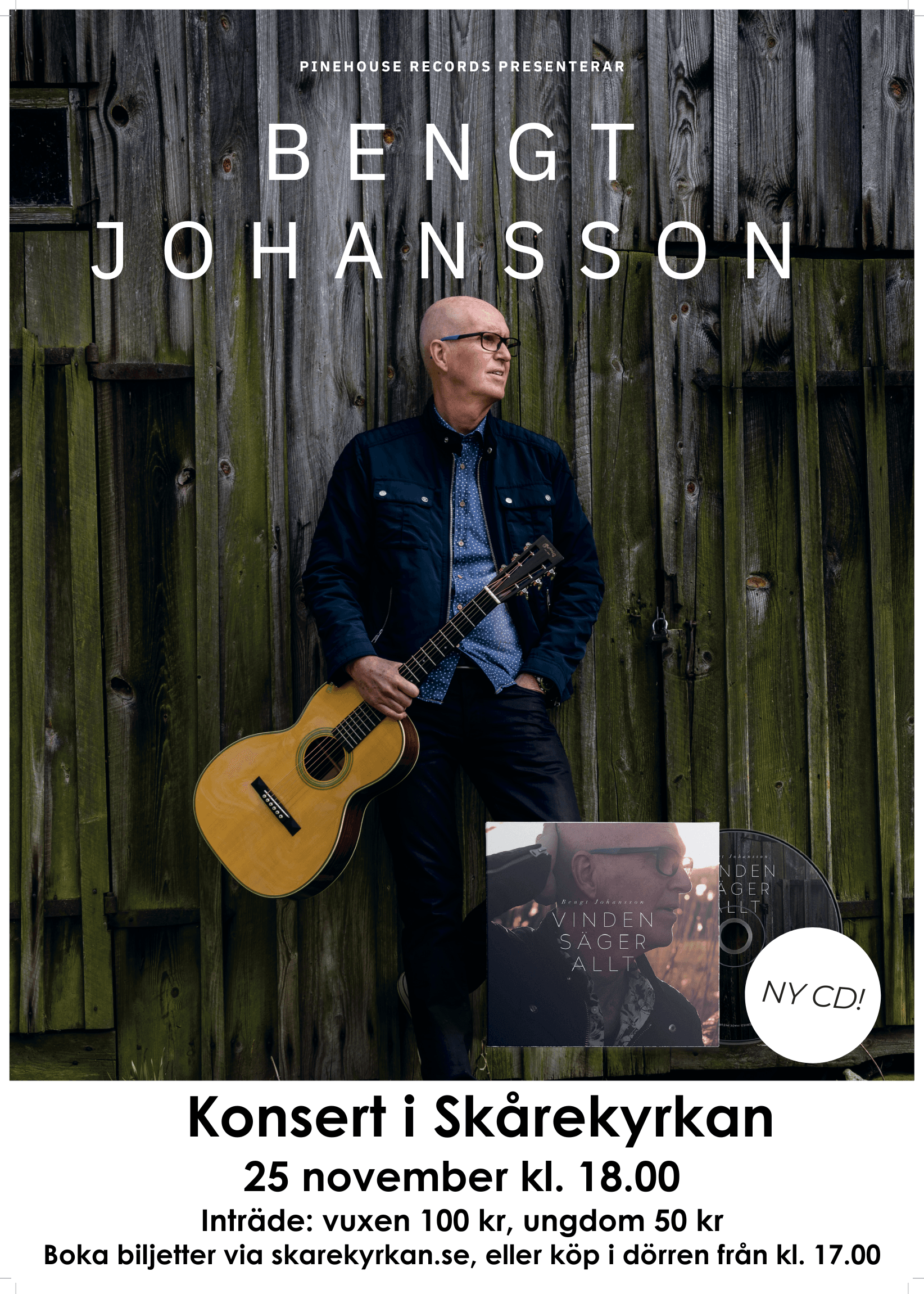 1 evenemang,![]() ![]() Välkommen på konsert med Bengt Johansson med band! Kostnad: vuxna 100 kr, under 18 år 50 kr. Du förbokar (senast kl. 20.00 23/11) din biljett nedan. Klicka på ”Kommer”. Eller köp direkt i dörren om biljetter finns kvar, från kl. 17.00. Bengt Johansson, välkänd kristen artist och sångförfattare. Hans röst, gitarrspel och stora sångskatt har gett […]