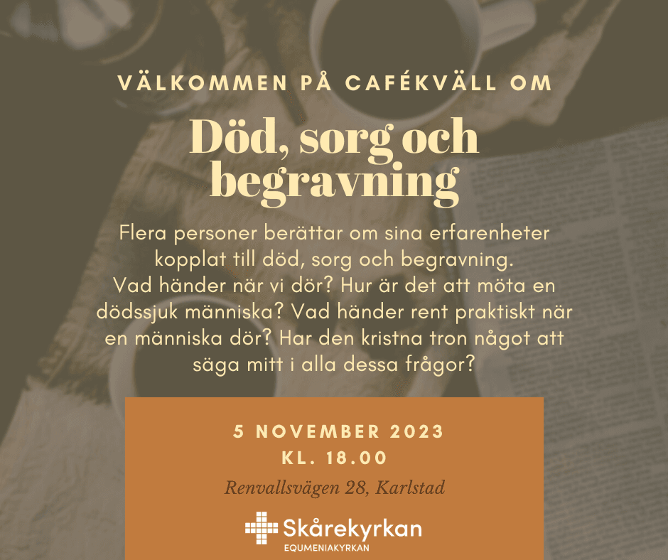 1 evenemang,![]() ![]() Välkommen på en kväll där vi pratar om döden, livet, sorg och begravning. Döden är en naturlig del av livet, ändå kan det vara väldigt svårt att prata om andras och sin egen död. Vi får möta en pastor och begravningsentreprenör, en sjukhuspastor och en som jobbar med svårt sjuka, döende patienter. Våra pastorer […] |