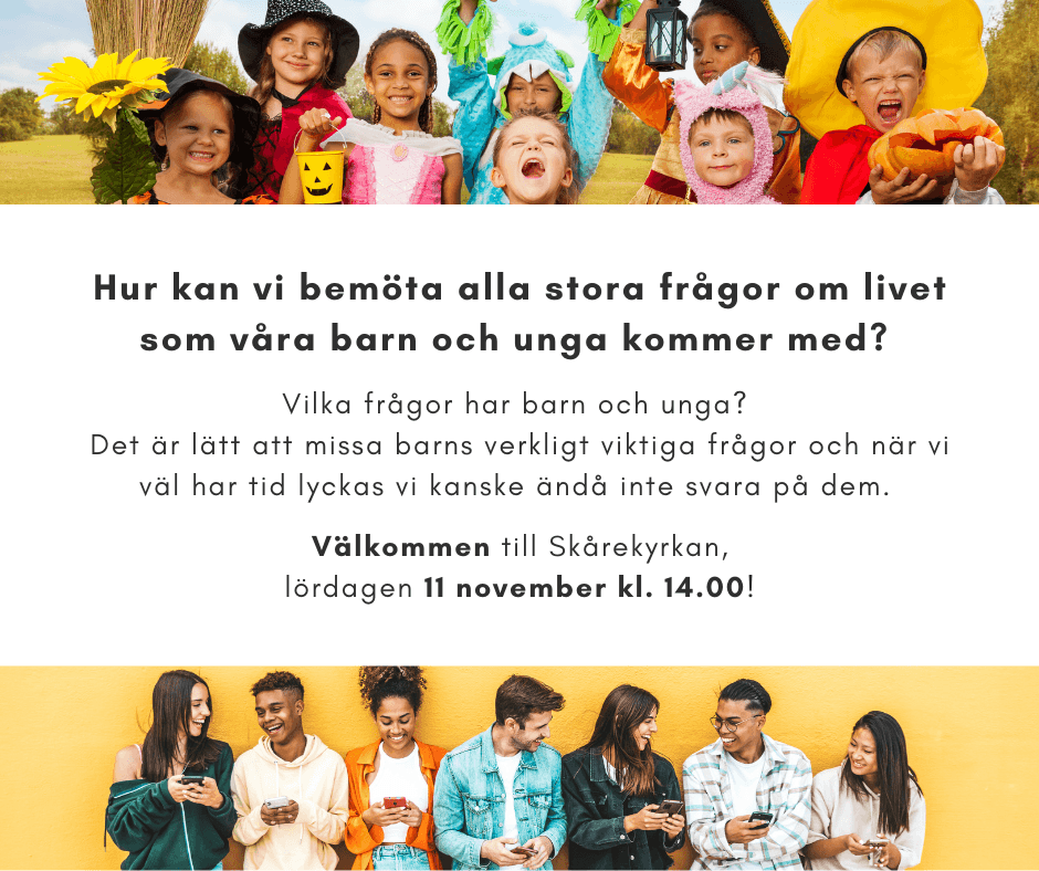 2 evenemang,Välkommen att äta tacos och efterrätt i Skårekyrkan ikväll! ANMÄL DIG senast onsdagen innan så vi vet hur många som kommer. Lekrummet och loftet är såklart öppna så den som behöver få leka/springa av sig har gott om plats. Vi avslutar kvällen med en kort andakt ca kl. 18.45. Vi gör dessa kvällar tillsammans och […]